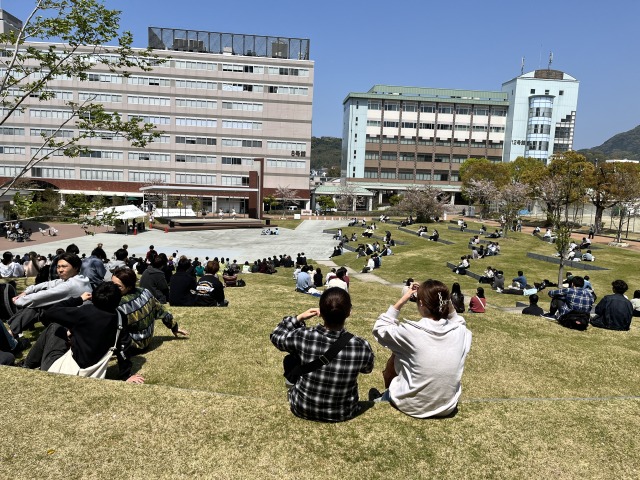 九州産業大学では、現在、新入生に向けたサークル勧誘が活発に行われています。