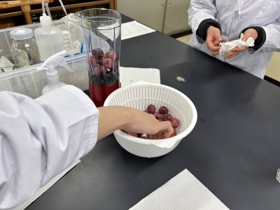 実習内容には、納豆菌・酵母・黄麹菌といった有用微生物の純粋培養と顕微鏡観察、さらにはワインの製造と成分分析、甘酒の製造とアミラーゼ活性の測定などが含まれており、発酵や微生物の力を活かした食品の仕組みを、実際の手技を通して深く理解することができます。