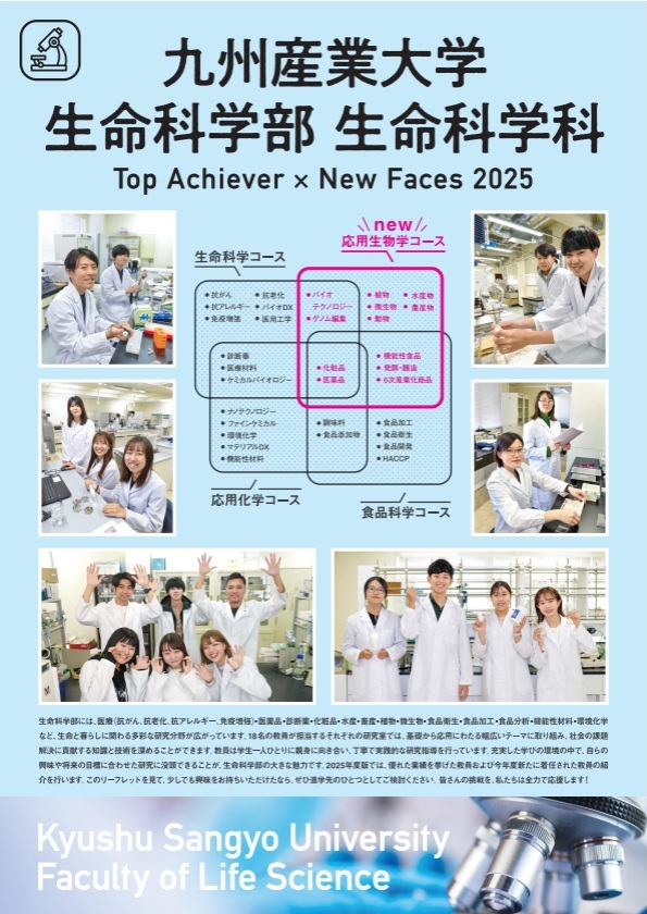 このたび、生命学部では、優れた業績を挙げた教員および新任教員の研究活動などを盛り込んだ新しいリーフレットが完成しました!