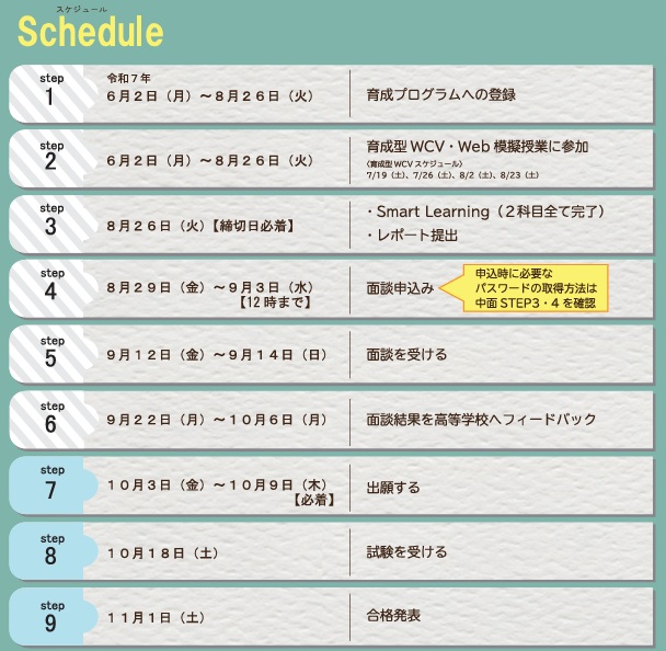 ★育成型入試のスケジュール表を以下に添付します。