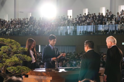 入学式では、学長の告辞、入学生宣誓、在学生代表歓迎の辞が行われれました。入学式後には、在学生による歓迎レセプションが盛大に行われました。