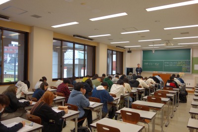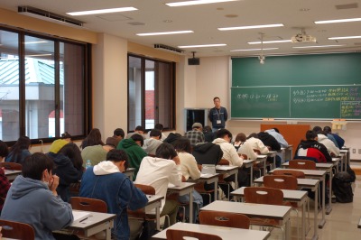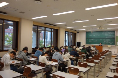 生命科学部では、数学、化学、生物の3科目について、高校の学習内容に関する基礎的問題を出題し、それぞれ50分間かけて解いて頂きました(学籍番号順に3教室に分かれて実施しました)。