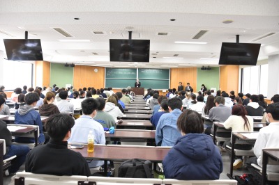 新入生を対象とした学科懇談会が行われました。学部長・主任の挨拶、全教員(担任)の紹介、大学院の紹介、取得可能な資格の紹介および学内サークルの紹介などを大講義室にて行いました。その後は6班に分かれて、生命科学部の関連施設・教室の見学および集合写真撮影を行いました。新入生の皆さん、これから4年間充実した大学生活を送って下さい。教職員一同、皆さんの成長を応援し続けます!