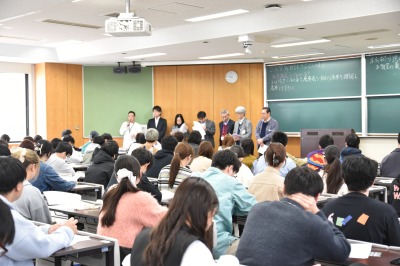 選抜された優秀な3年次生5名を対象とした、トップアッププログラム(米満先生が代表)の開講式が行われました。本プログラムでは、大学院の紹介、先輩との対談、企業訪問、研究者スキルアップ講座、論理的向上講座、資格取得講座、就職対策講座、企業財務講座など多彩な内容について、徹底した少人数教育を行い、有力企業・研究機関への就職支援を行います。