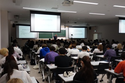 新入生を対象として、2年次生以降の配属コースの紹介および18研究室の紹介が3週にわたって行われました。6月10日は食品科学コースの6研究室の紹介が行われました。