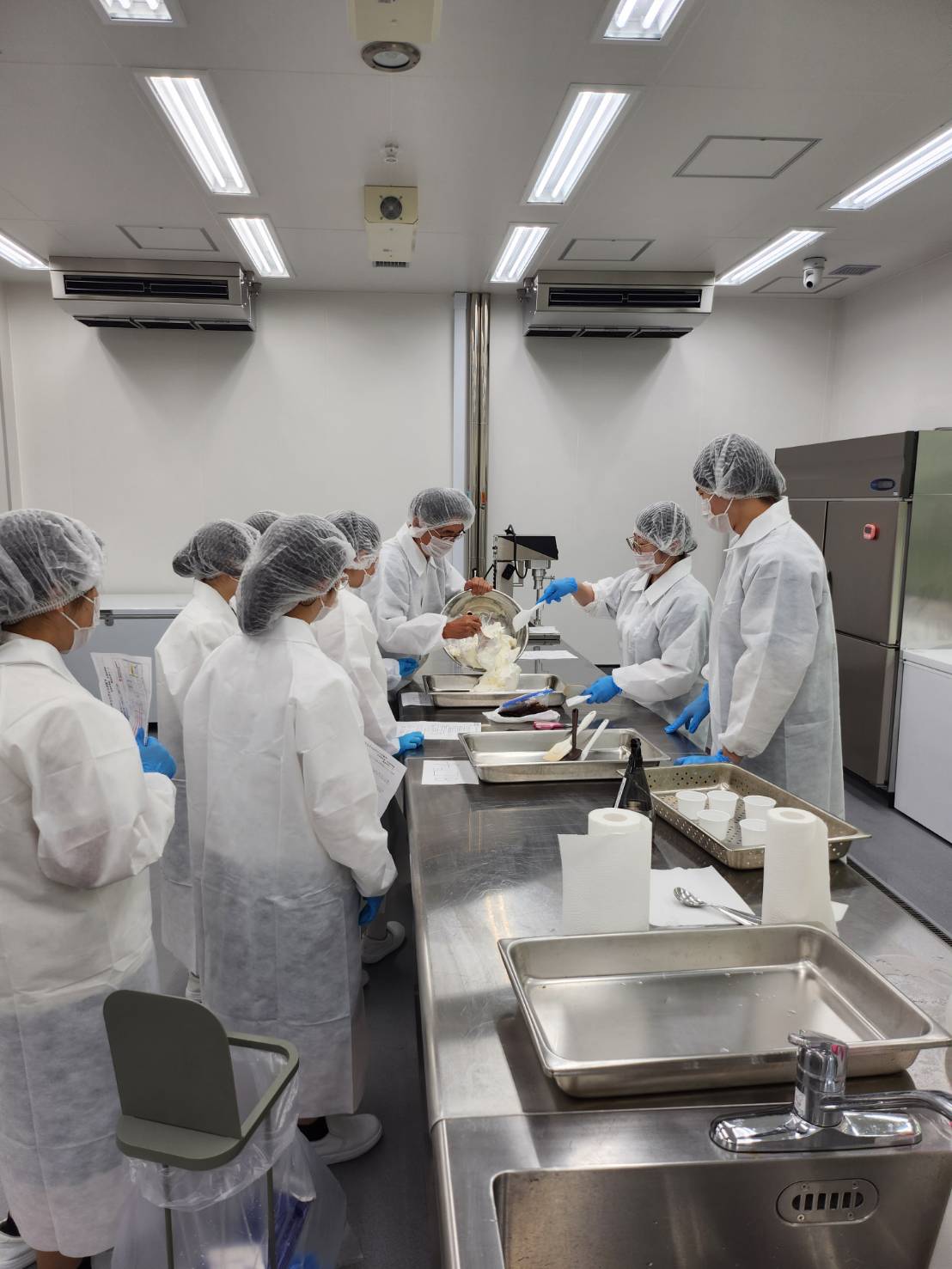 食品加工プラントでのアイスクリーム製造体験の写真も掲載いたします。
