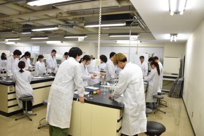 九州産業大学生命科学部生命科学科では、21世紀の注目分野である「生命(美・健康)」「物質(材料・環境)」「食品(農学)」領域で役立つ知識・技術を修得し、安全・安心・快適かつ豊かで持続可能な社会の実現に貢献できる技術者を育成します。そのために、まず生命科学の基礎となる「化学・生物」に重点を置いた少人数教育を行い、その後、応用化学・生命科学・食品科学の専門について学びます。さらに学んだことを社会に役立てるため、各種実験、ゼミナールおよび卒業研究を通して総合的な視野と柔軟で論理的な思考力を培います。教員と学生の距離を近くするための「クラス担任制度(アカデミックアドバイザー)」や自習室としても利用できる「学習支援室」を設置するなど、教育環境の充実を図っています。