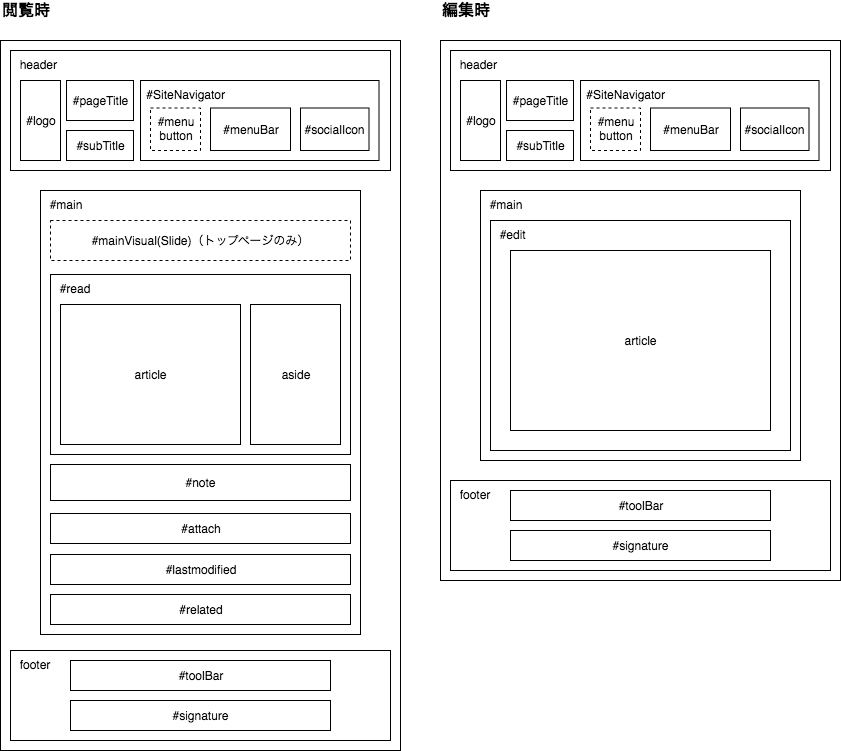 - Slide:トップページに自動挿入されるスライドを設定する際に編集します。