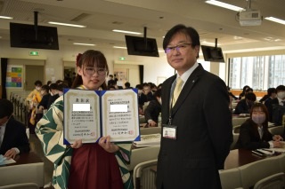 ※写真は合格者2名のうち1名と指導教員の中山先生です