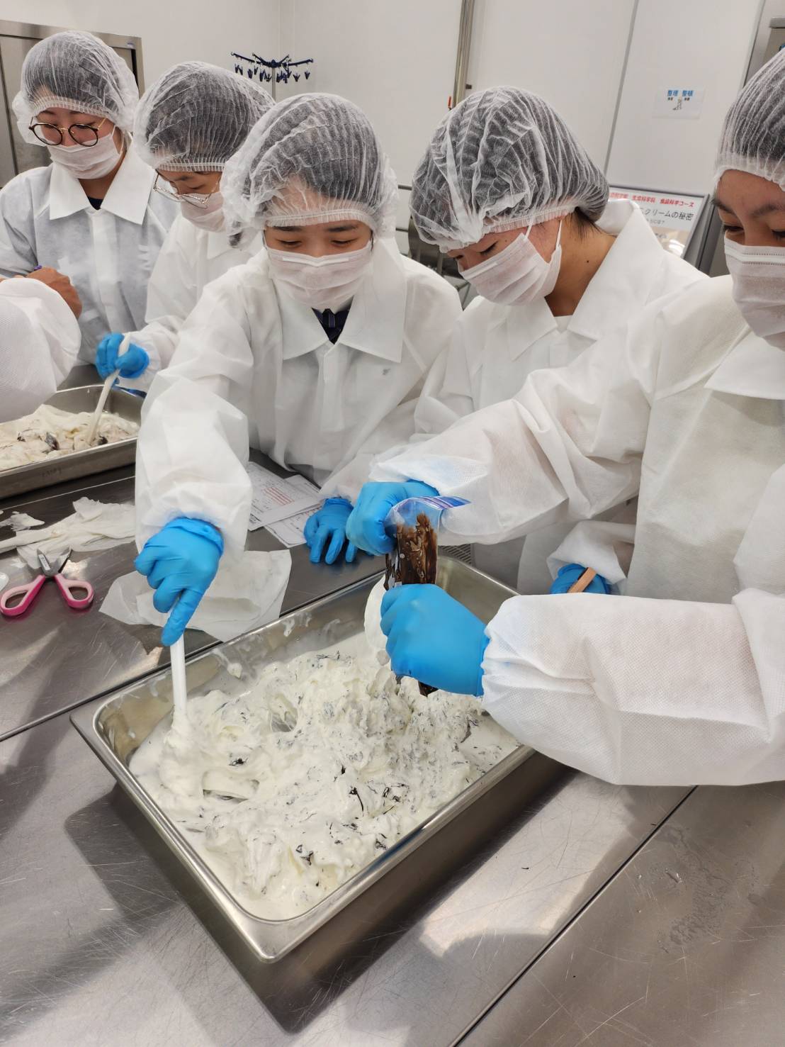 食品加工プラントでのアイスクリーム製造体験の写真も掲載いたします。