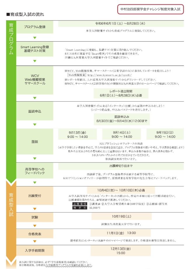 "「育成プログラム」の登録とレポート提出は8月28日(水)と迫っています。入試要項をよくご確認のうえ、手続きを行って頂くようお願いいたします。"