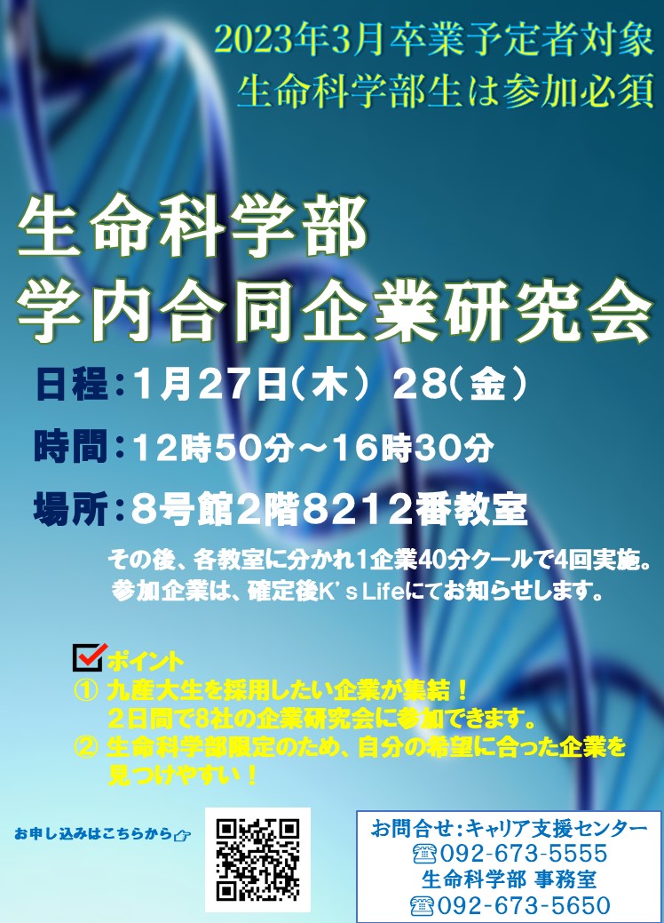 生命科学部単独企業説明会(研究会)開催|2022.1.27, 28|