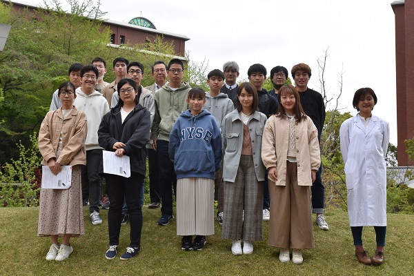 新入生との学科懇談会として、担任教員の紹介、取得可能な資格の紹介、学部内サークルの紹介、白衣の採寸、大学の施設紹介、集合写真撮影などが行われました。新入生と教員は初めての顔合わせとなりました。今後履修登録などで不明な点が生じた際には、担任の先生(または助手の先生)に相談に行くようお願いします。