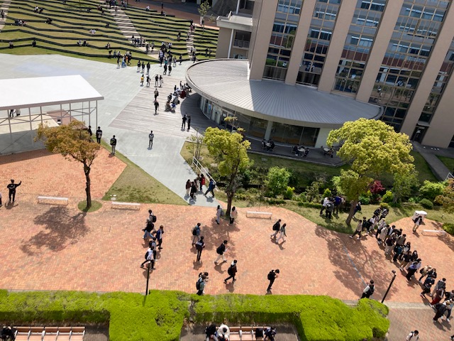 令和3年度前期講義が始まりました。コロナの感染拡大状況をふまえ、昨年度とは異なりほぼすべての科目が対面で行われています。キャンパスにも以前のような活気が戻ってきています(写真はお昼休みの中央広場の風景です)。