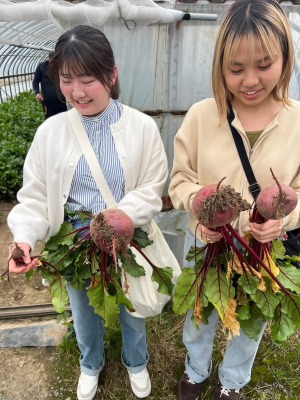 また、栄養価が高いですが、日本ではまだ知名度が低いレッドビーツの普及を図るため、久留米市のビーツ農家さんからの依頼を受け、開発を進めています。収穫体験や日本人が食べやすいクリームスープ、ケーキ、プリン、チョコレート、葉っぱを使ったハーブティーなどを提案しました。