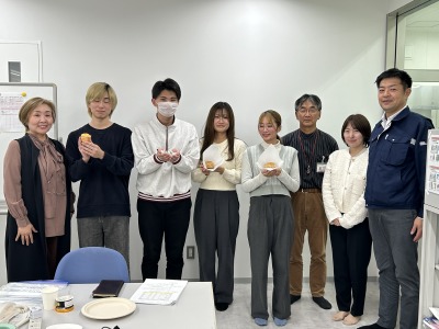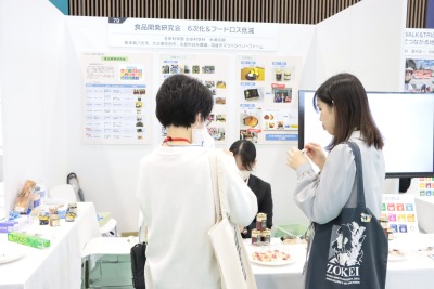 食品開発研究会は生命科学部内の学生サークルで、SDG's 12「つくる責任・つかう責任」をテーマに取り組んでいます。本イベントではこれまで取り組んできた未利用資源の有効活用検討で商品化されたものを展示、試食を実施しました。これらのいくつかは、道の駅で購入することが出来ます。