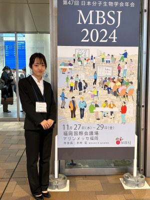 11月27日(火)~29日(木)、福岡国際センターで開催された第47回日本分子生物学会に遺伝子・ゲノム研究会の2年次生の矢津田さんが研究成果発表を行いました。2年次生での全国大会の発表は、生命科学部初の事例となります。