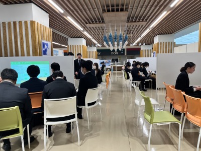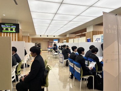 就職を控えた理工系学部の3年次生および修士1年次生を対象とした合同企業説明会が本学のアルテリア(食堂)にて開催されました。2日間で約100社の採用意欲の高い企業をお招きし、25分間の企業説明会を開催していただきました。