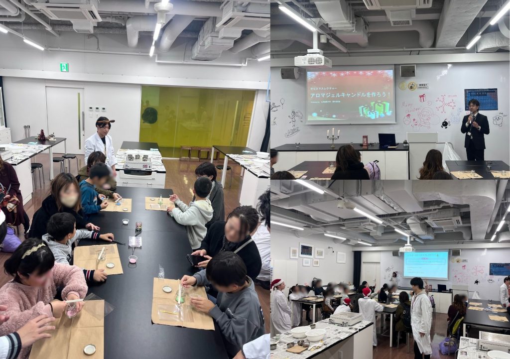 12月7日、8日の2日間、生命科学部内サークルである理科研究会が福岡市科学館で、小中学生を対象にクリスマスレクチャー「クリスマスアロマジェルキャンドルをつくろう!」を開催しました。