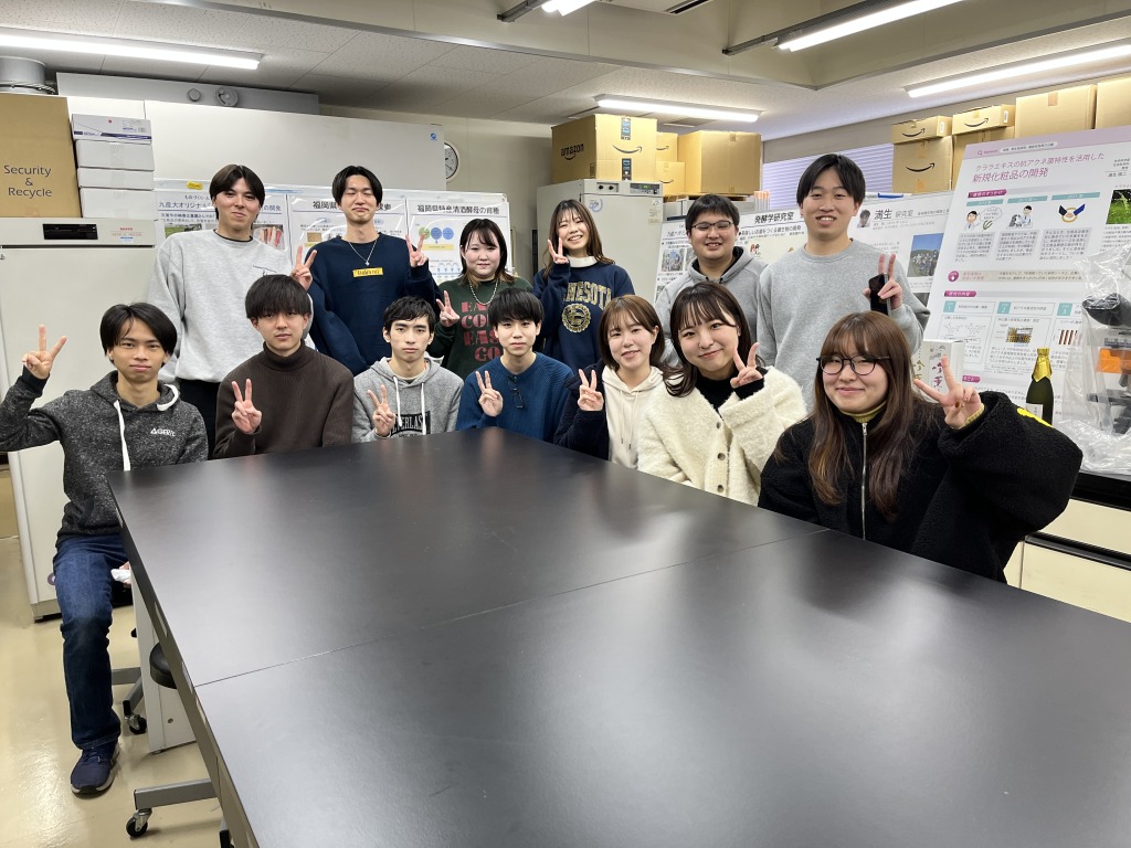 微生物は目に見えない生物ですが、食品・医薬品・新素材・エネルギーの生産、また環境浄化など私たちの暮らしを支えている大きな存在です。発酵学研究室では、微生物の有用なはたらきである「発酵」について研究を行い、商品開発を通して地域の活性化を図っています。現在は、主に日本酒や焼酎の製造の主役となる微生物の一種「酵母」や「麹菌」を対象として、自然界からの分離(探索)や育種(改良)を行うことにより、香味に特徴を持った酒類の開発を、福岡県内の酒造メーカーとの共同研究によって進めています。当研究室は試験醸造免許(清酒、焼酎、果実酒、リキュール)を有しており、分離・育種した微生物の醸造適性の評価を行うために、研究室内にて清酒・焼酎・果実酒の小規模製造もおこなっています。これらの成果により、種々の清酒・焼酎・果実酒の開発に成功し、一部は市販化されるまでに至っています。現在は新たなジャンルとなる醸造酒やバニラ香を特徴とした焼酎の開発を微生物の研究を通じて行っています。